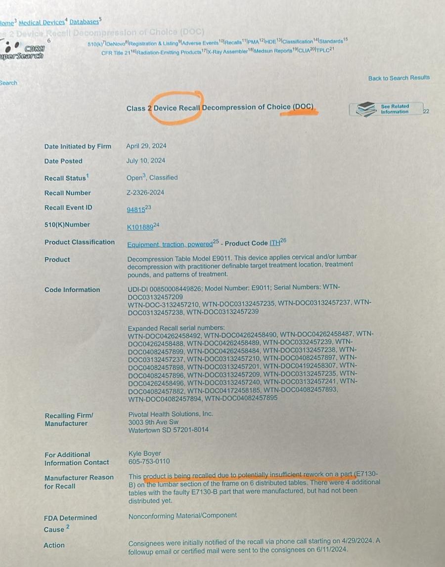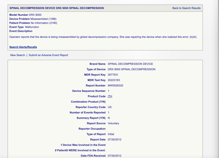 Disclaimer note: Only spinal decompression devices who have a record of proven fraud, FDA documented injury issues or documented legal judgements are disclosed on this site
